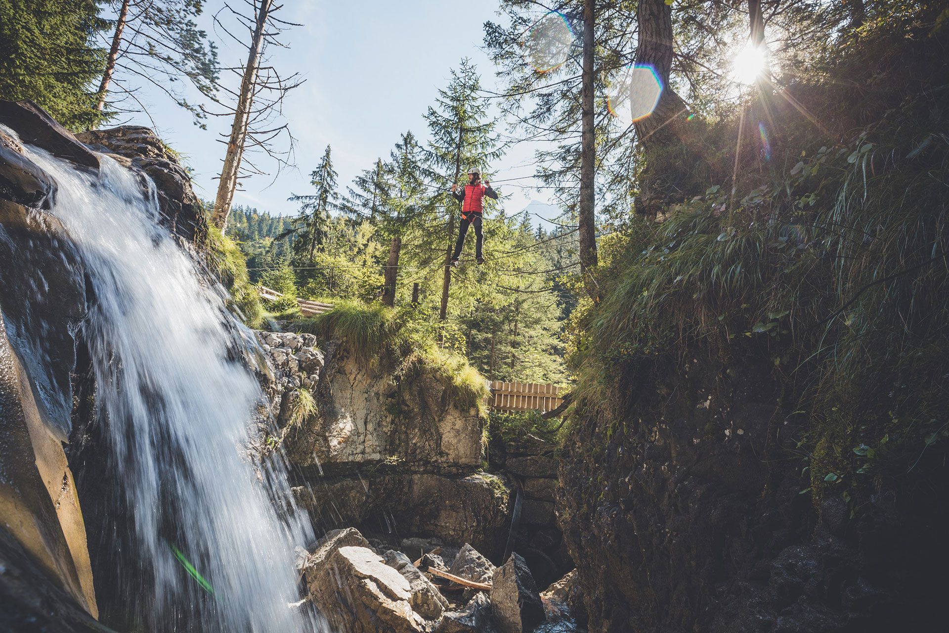 The hotel shuttle takes you to Ehrwald for the Häselgehr waterfall, where our walk will start. After visiting the waterfall we head along a relatively level path through the woods and across meadows to reach the Chapel of St. Anna. There is then a short climb to the Gamsalm directly beneath the Wetterstein mountains, taking about 40 minutes. We make a stop here to enjoy some delicious Tyrolean food. After a short downhill walk through the woods and meadows we head back to Lermoos with the hotel shuttle.